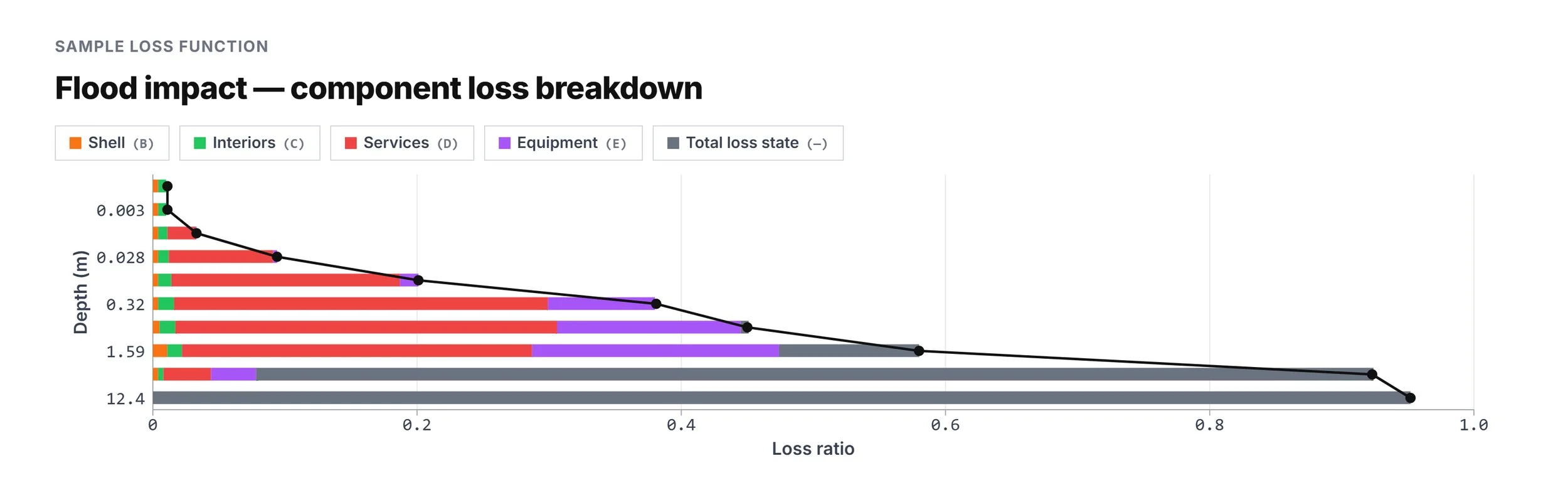 Example loss function: intensity-based flood loss ratios with Uniformat L1 breakdown